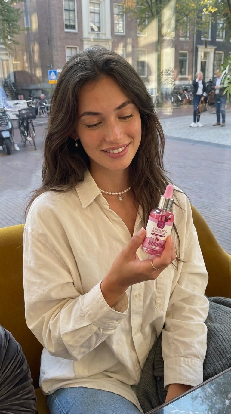 Our Lymphatic Drops are your daily essential for achieving natural lightness and a visibly slender silhouette. Crafted with carefully selected natural ingredients, they are designed for active performance throughout the day.